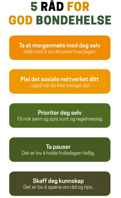 På nettsiden Godt bondevett, finner du flere gode tips og råd. Blant annet flere nettsider om psykisk helse og bistand i krevende situasjoner Nyttige nettside.